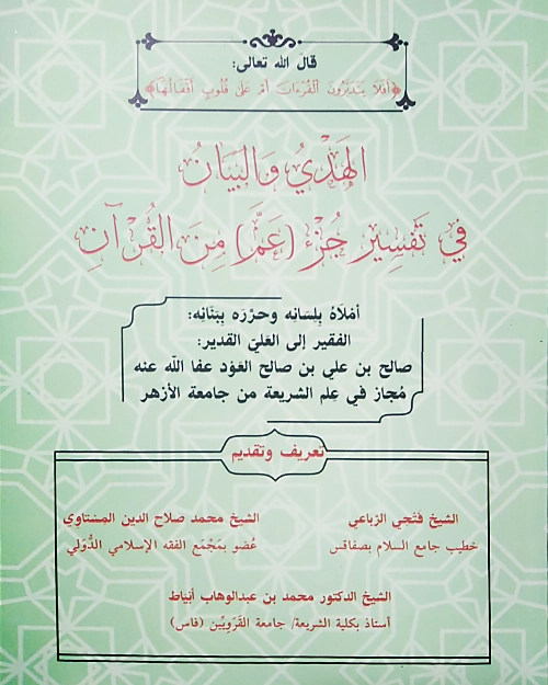 الهدي والبيان في تفسير جزء ‘عم’ من القرآن للكاتب صالح بن علي صالح العود