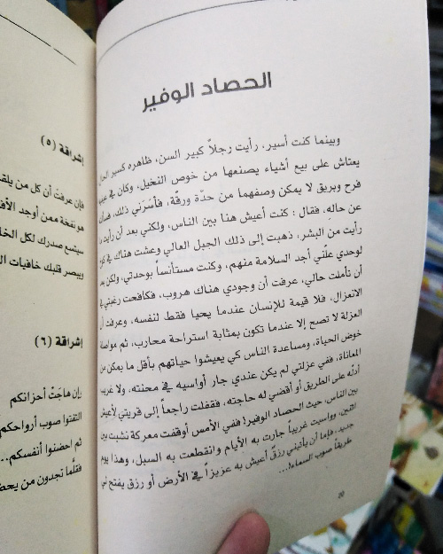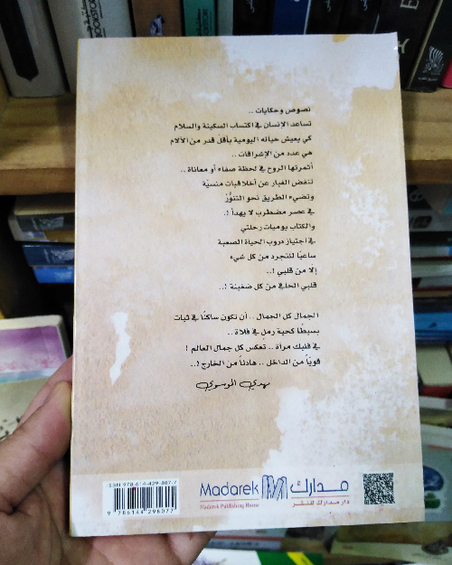 نصوص وحكايات .. تساعد الإنسان في اكتساب السكينة والسلام كي يعيش حياته اليومية بأقل قدر من الآلام .. هي عدد من الإشراقات أثمرتها الروح في لحظة صفاء أو معاناة.. تنفض الغبار عن أخلاقيات منسية وتضيء الطريق نحو التنوّر في عصر مضطرب لا يهدأ … والكتاب يوميات رحلتي في اجتياز دروب الحياة الصعبة .. ساعياً للتجرد من كل شيء .. إلا من قلبي .. قلبي الحافي من كل ضغينة .. الجمال كل الجمال أن تكون ساكناً في ثبات ..بسيطاً كحبة رمل في فلاة .. في قلبك مرآة تعكس كل جمال العالم .. قوياً من الداخل … هادئاً من الخارج ..