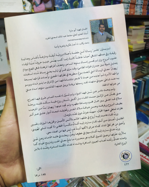 لــم يــدوّن “عامــر” رســالة أمــل مفعمــة بأحــلام ورديــة أنيقــة، ومترعــة بأنفــاس وجدانيــة رقيقة، وفي صدقها تنتفي أحياناً خاطئة كاذبة، إنمـا كتـب بهـمس عينيـه حروفـاً نديـة الوفـاء، خلوب الـروح، وإن لـم يُحسـن إمسـاك سـلوها السـاحر، وخطـف أطرافهـا المرهفـة، فـي تلهـج بـوداد يتمايـل شـوقاً بـين جـدران فـؤاده الظامـئ، وقـد سـرى قمـراً في لياليـه يعتـيل بسـاط منـاه، اسـتقبلت ريهان معـاني الرسـالة الـتي تابعـت بـوح سـطورها في نظراتهـا الخجلى، وأجادت قراءتهـا بمسـحة براءتهـا الآسرة، ثـم أجابتـه مـن حيـث لا تشـعر، بابتسـامة فيهـا مـن الإشراق مـا ينير مـداه، ويرسـو بـه عنـد شـاطئ جـوديّ منتهـاه، لقـد رسمتها بريشـة بريـق عينيهـا الفاتنتـين، ملؤهـا مـداد صفّي من عبراتها الدافقة.